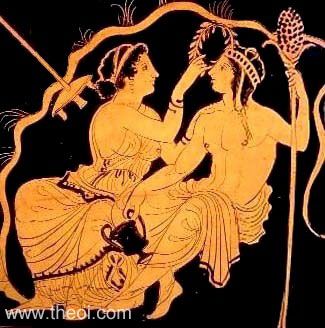 I’ll admit that this is more tenuous. However, Dionysos and Demeter, both vegetation deities in their own rights, are associated with death and rebirth in some fashion. In Demeter’s case, her daughter descends to Hades, and comes up again in the Spring. Dionysos descends, himself, to the Underworld, to retrieve Semele and Ariadne.